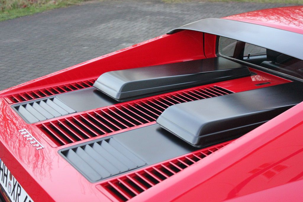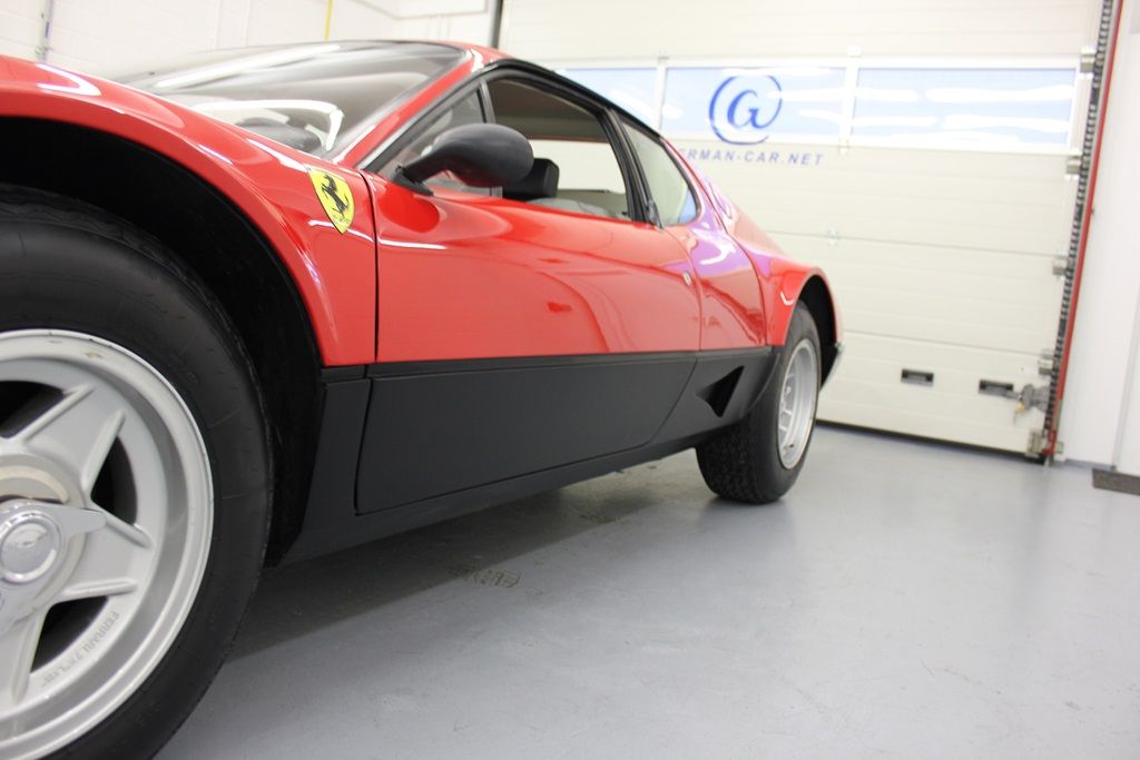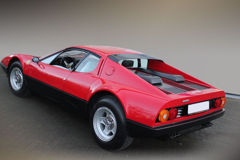 External differentiators included a new chin spoiler upfront, incorporated in the bumper. A NACA duct on the side provided cooling for the exhaust system. At the rear there were now twin tail lights and exhaust pipes each side, instead of triple units as on the 365 GT4 BB.